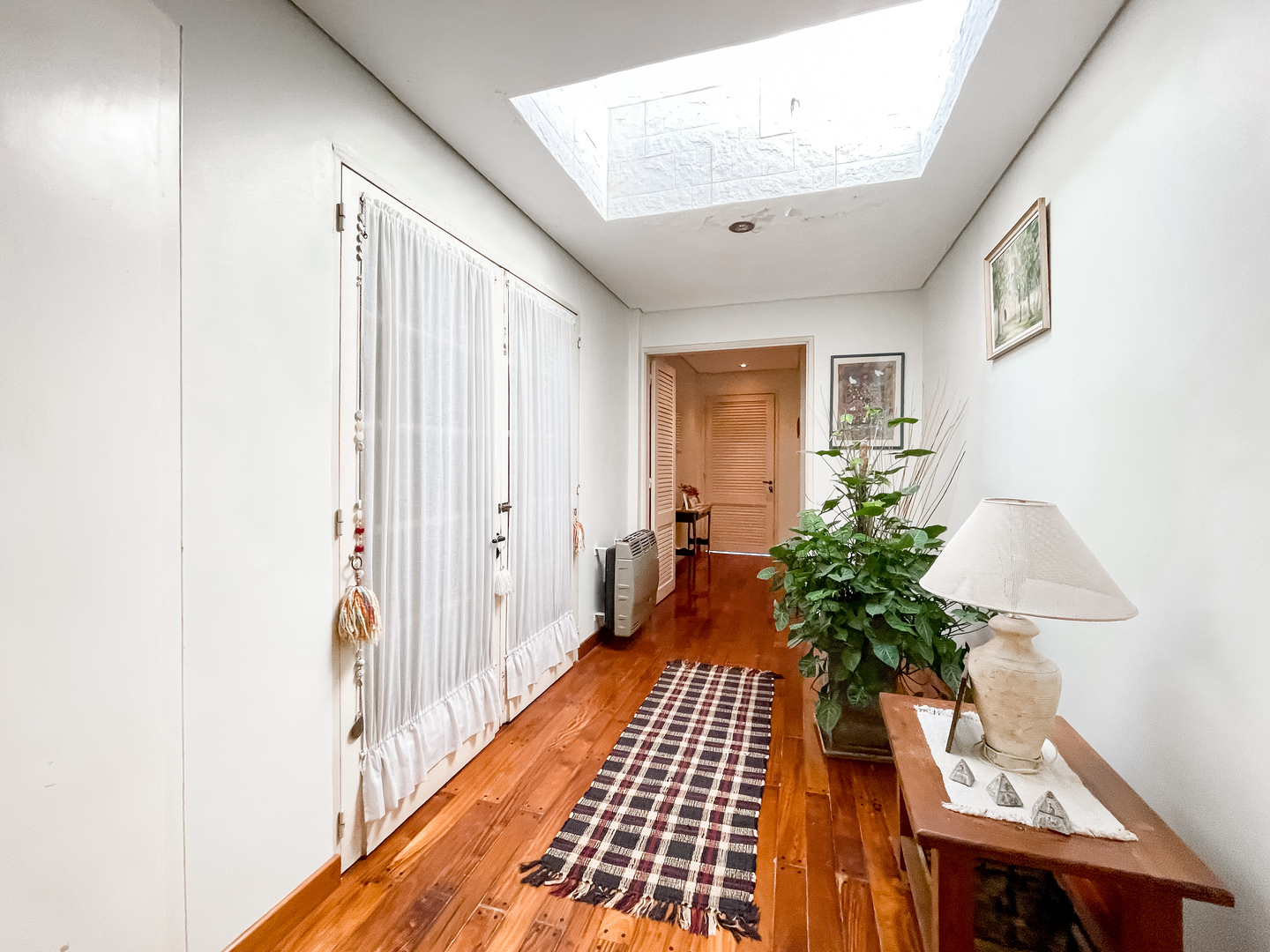Excelente casa desarrollada en una planta en destacada zona de La Plata. Al ingresar te recibirá un práctico espacio para guardar el auto, con acceso directo a un luminoso living-comedor con acceso al parque. Un pasillo con pisos de madera que te dirige a un baño completo con bañera y a dos amplios dormitorios con placard interiores equipados. Uno de ellos cuenta con un baño completo, amplio muy luminoso, además de acceso a un encantador jardín interno que también conecta con la cocina.
