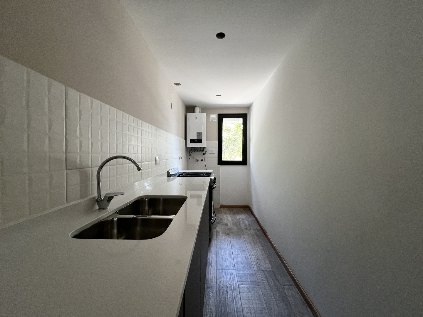 – Cocina equipada con cocina Orbis, pileta de acero inoxidable y mueble bajo mesada.